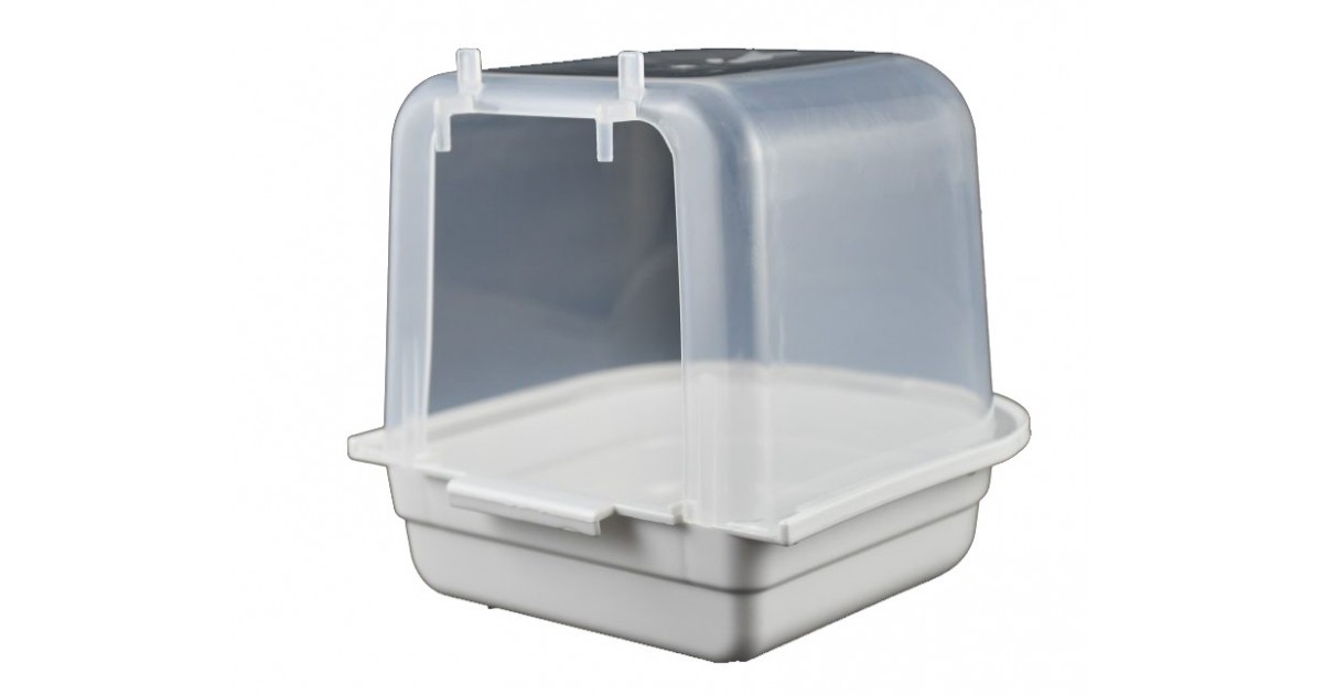 Fabricada con materiales de primera calidad, bañera exterior desmontable fácil limpieza y almacenamiento, suelo antideslizante, plástico ultra resistente y enganches adaptables a cualquier tipo de jaula.