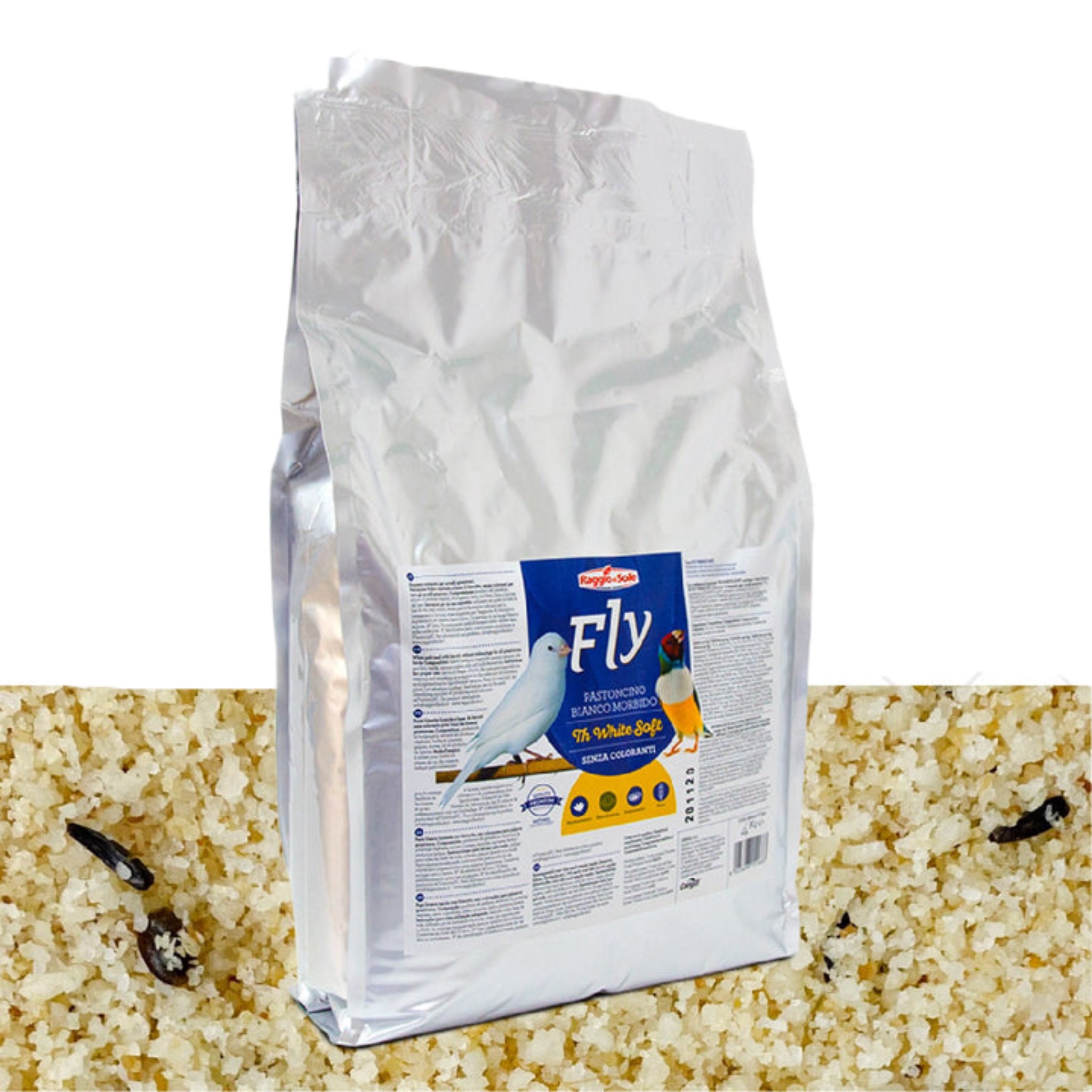Pasta blanca húmeda profesional, sin doré, de calidad extra para todo tipo de pájaros en especial para canarios blancos, mosaicos y de colores claros en general, evita la aparición de coloraciones indeseadas en las plumas , a base de productos de panadería, extracto de proteínas vegetales, aceites y grasas, azucares naturales, semillas, leche y productos lácteos, ovoproductos, sustancias naturales. Ideal en las etapas de cría, mantenimiento y la muda. Cada saco y cubo de pasta contiene una pre-mezcla compuesta de vitaminas, sales minerales y aminoácidos esenciales que se unen junto con la pasta para alcanzar una alimentación altamente nutritiva y equilibrada. (1 bolsa por cada 4 kg de pasta).
